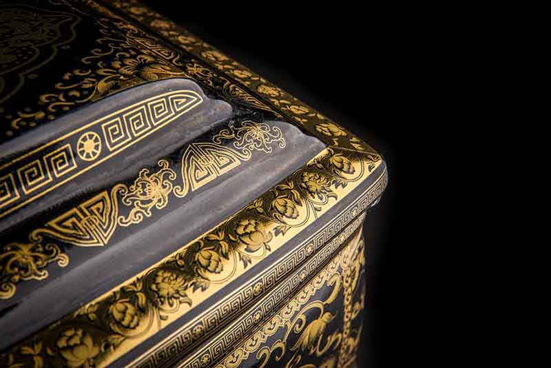 這款【黑釉福滿堂】產(chǎn)品,我們可以看到整體器型大氣磅礴,圖案典雅精致,1300度高溫煅燒,巧妙運(yùn)用黑色作為底色,搭配描金,大氣而不失精致,莊重而不失典雅。福滿堂象征著‘福星高照’,有著招財(cái)?shù)淖饔?,能夠興旺家里的財(cái)運(yùn),事業(yè)順利、節(jié)節(jié)高升!尺寸:345x250x250mm