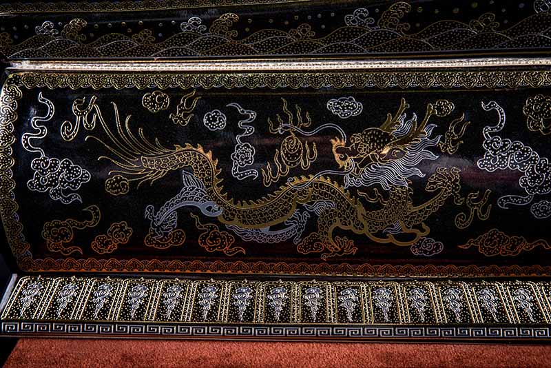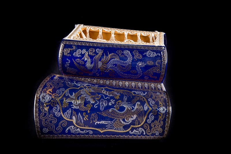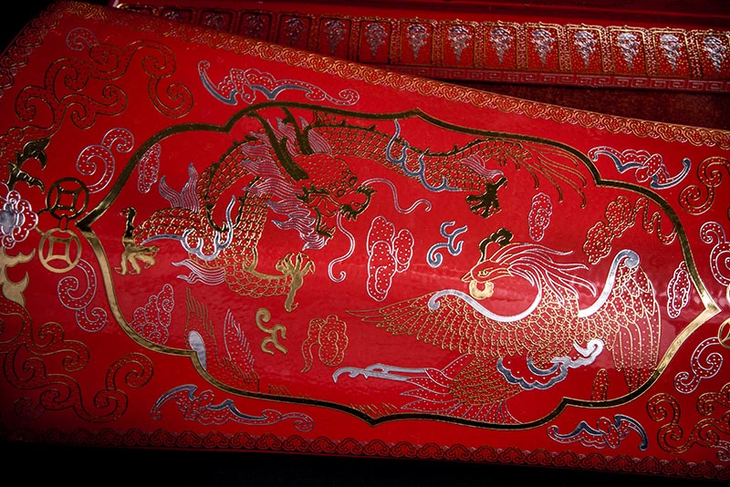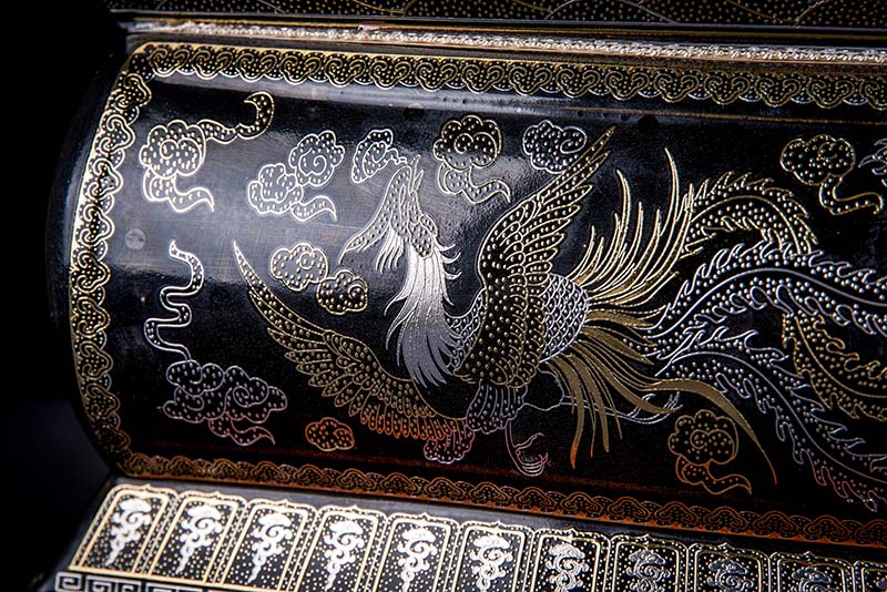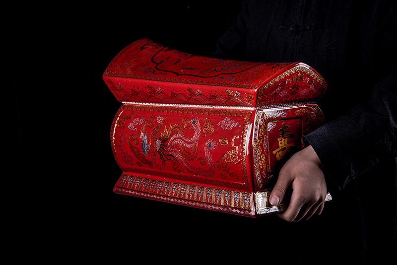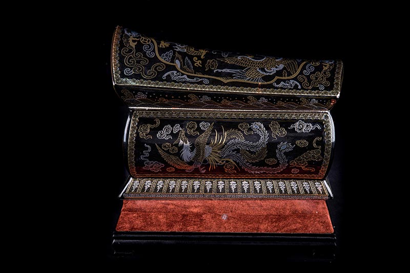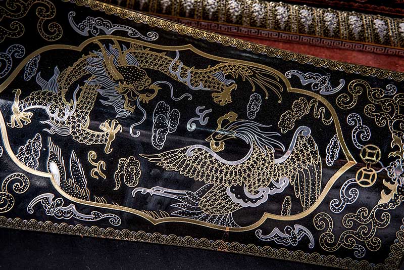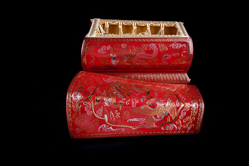 這款【金銀龍鳳】系列產(chǎn)品器型是傳統(tǒng)的長棺造型,古人常說:見棺者,升官發(fā)財,可見它的美好寓意。我們可以看到這款產(chǎn)品,一面龍,一面鳳,素有“龍鳳呈祥”一說,采用的是“錯金銀”工藝,它是中國非物質(zhì)文化遺產(chǎn)名錄的一項美麗的藝術(shù),源自于“春秋戰(zhàn)國時期”至今已經(jīng)2000多年,把這種精湛工藝運用到我們永生盒,既是傳承,亦是發(fā)揚!尺寸:400x220x290mm